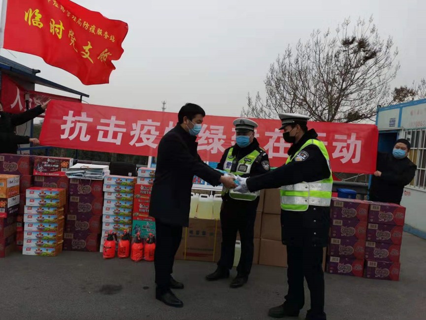 王建發(fā)董事長一行首先來到滎陽市高速收費站,慰問了執(zhí)勤在高速收費站聯(lián)合執(zhí)勤的干警同志們,并向他們捐贈了急需的防疫物資及生活物資。看他們對每一輛下站車輛每位人員進行詳細的詢問及檢查,王建發(fā)先生表示了崇高的敬意與衷心的感謝,滎陽市應(yīng)急管理局副局長安良表示: “特別感謝綠建公司的雪中送炭,防疫物資緊缺使一線同志們面臨巨大的挑戰(zhàn),有了這批物資,收費站的全體同志們必將以更加飽滿的精神和高昂的斗志,全力以赴投入到這場阻擊戰(zhàn)中,堅決守護廣大民眾健康”
