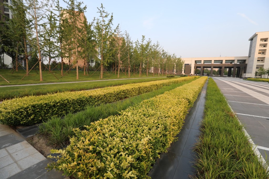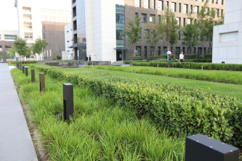 場(chǎng)地采用幾何式的線條設(shè)計(jì),利用植物、水景等景觀元素劃分出不同的功能空間,簡(jiǎn)潔明快,充滿現(xiàn)代氣息。道路結(jié)合植物做到人車分流,保障行人的安全。將商務(wù)區(qū)與其他樓連接在一起,創(chuàng)造出令人舒適的小尺度空間,鞏固了人與人之間的親密感受。大小空間的連接處由水景作為過(guò)渡,形成視覺(jué)焦點(diǎn),豐富空間層次。