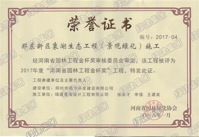 鄭東新區(qū)象湖榮獲2017年度河南省園林工程金杯獎工程