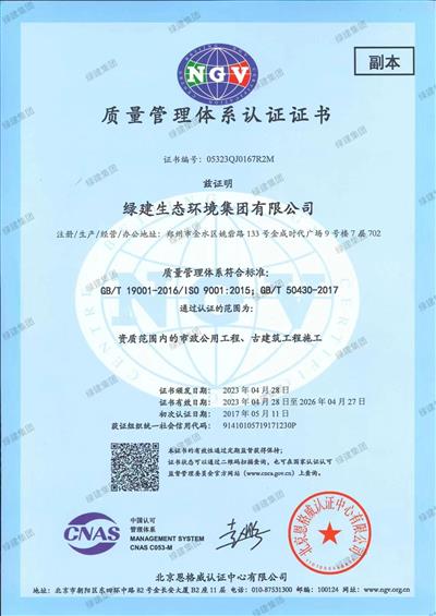 質量管理體系認證證書(園林綠化設計、建筑設計、城鄉(xiāng)規(guī)劃設計)